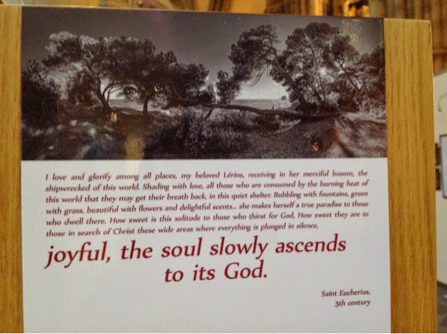 I also viewed an exhibit by a deacon who is a photographer who uses a technique call spectrography. It takes a small view and spirals it outward, and then reverses it. I need to read more about the process, but the photos were taken on an island in the Mediterranean of the coast of Cannes which is used as a religious retreat and is home to monks. The photos are breathtaking and the quote at the end is very moving. I would love to visit that island.